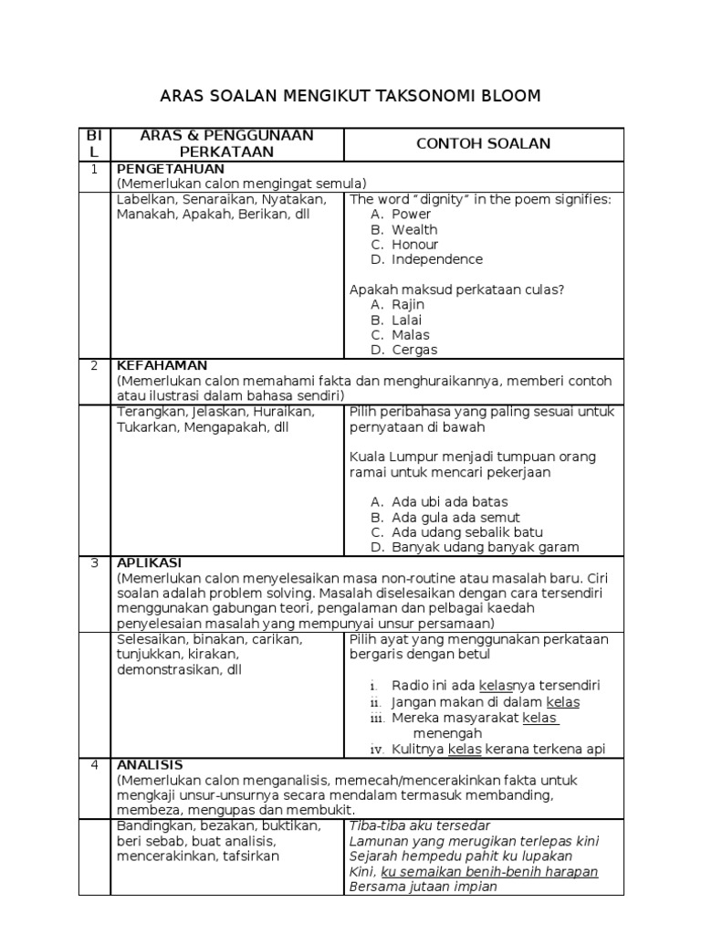 Contoh Soalan Berdasarkan Taksonomi Bloom Pdf